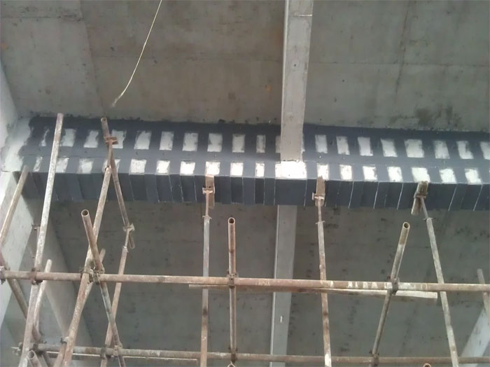 業主對前期已施工完工的砼樓梯、電動扶梯預留位置改變,經雙方技術交流商定,業主將該加固工程直接發包給我公司。加固方式有: 結構梁粘帖鋼板加固、新增加電梯梁植筋加固、新增加電梯井機坑大面積植筋、新增樓板大面積植筋。本工程2013年9月25日已竣工驗收合格并投入使用。